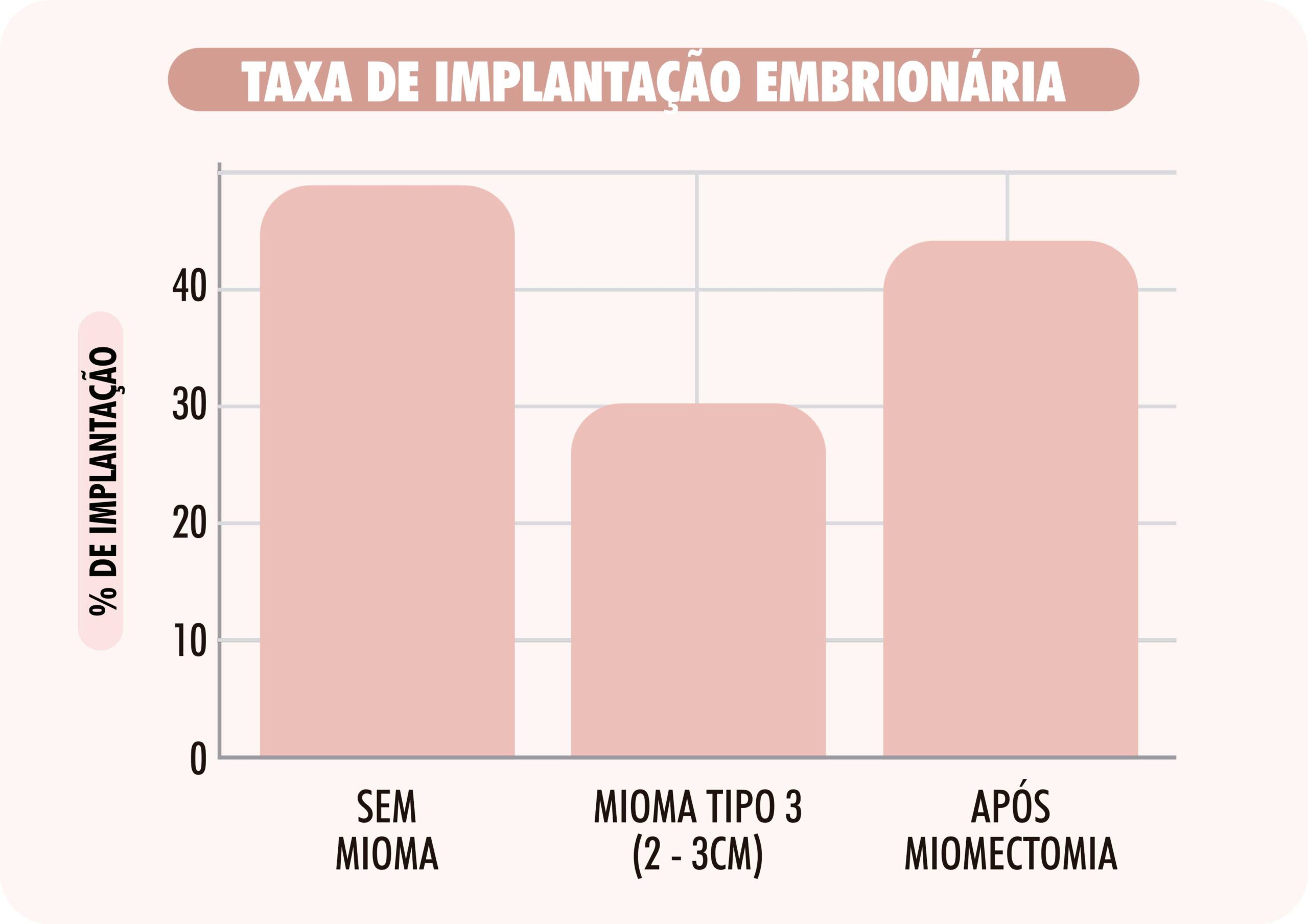 Os miomas tipo 3 podem prejudicar a implantação embrionária por diversos mecanismos: alterações da receptividade endometrial por meio da expressão gênica HOXA10 e LIF, inflamação local e vascularização comprometida e distúrbios na peristalse uterina (contrações uterina).